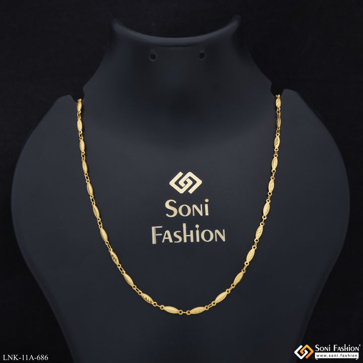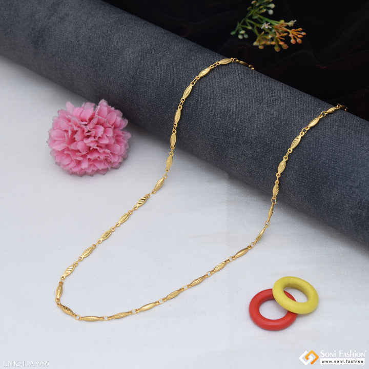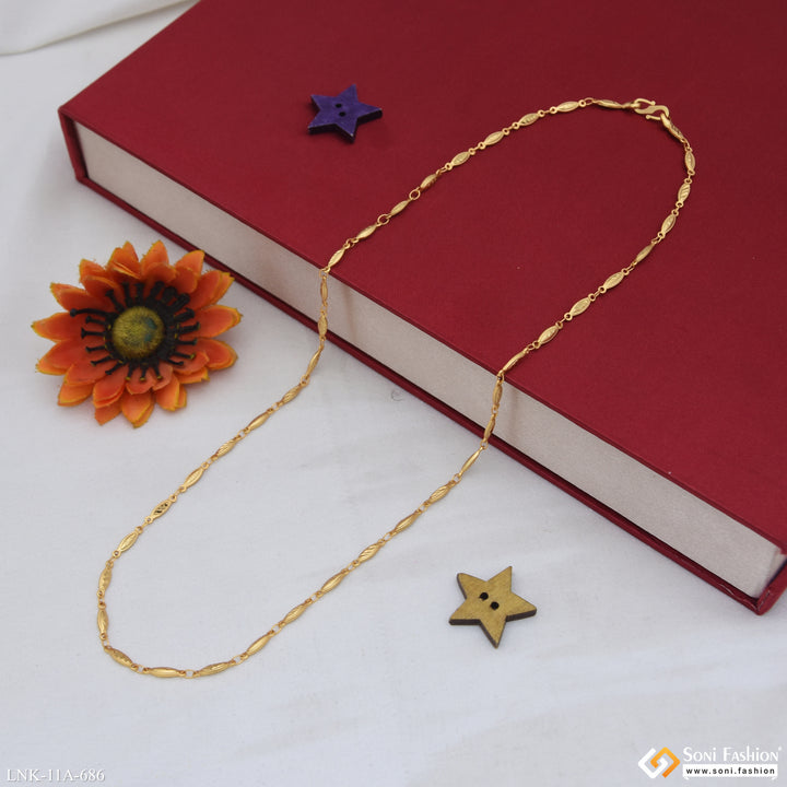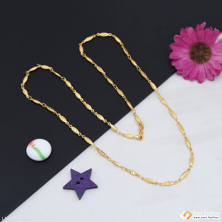 Elevate your elegance with this opulent gold-plated brass chain designed specifically for ladies. Featuring a shining, high-quality regular plating, this necklace combines durability with a luxurious golden finish. Perfect for everyday wear or special occasions, it adds a sophisticated touch to any outfit.