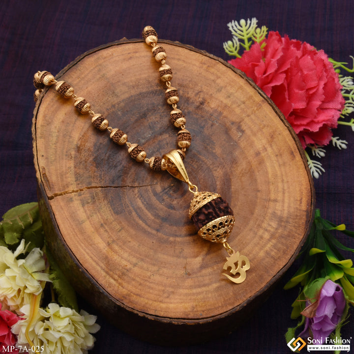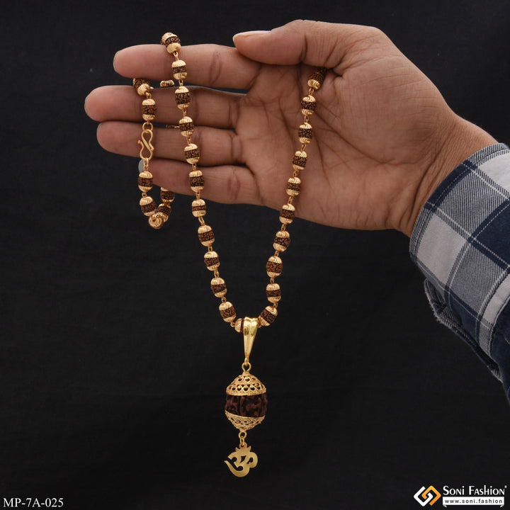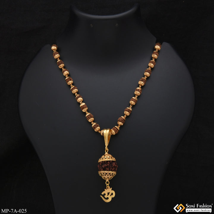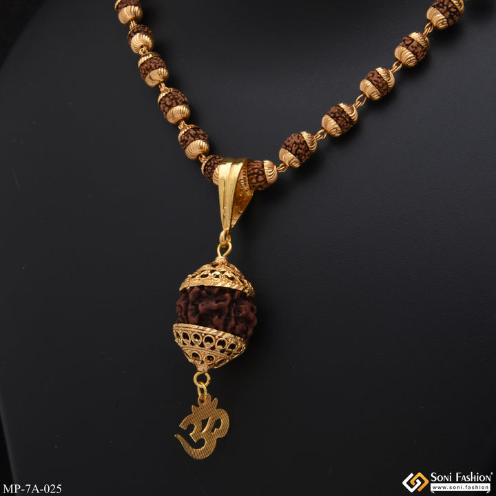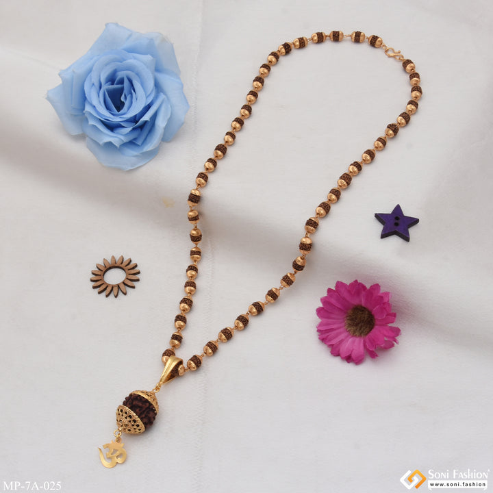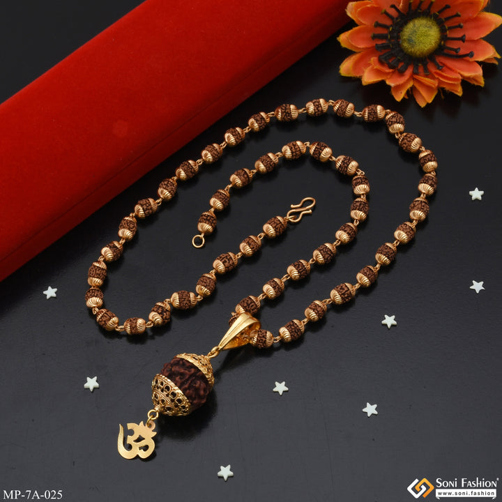 Om With Paro Fashionable Design Gold Plated Rudraksha Mala With Pendant - Style A025