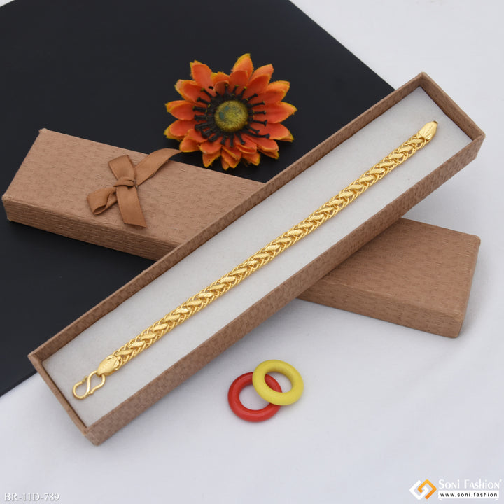 This gold-plated link bracelet for men combines classic style with durable brass construction. Its regular fit and shining finish make it a versatile accessory for everyday wear or special occasions. The hidden regular plating ensures long-lasting shine and resistance to tarnish, adding a touch of elegance to any outfit.
