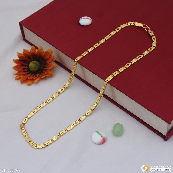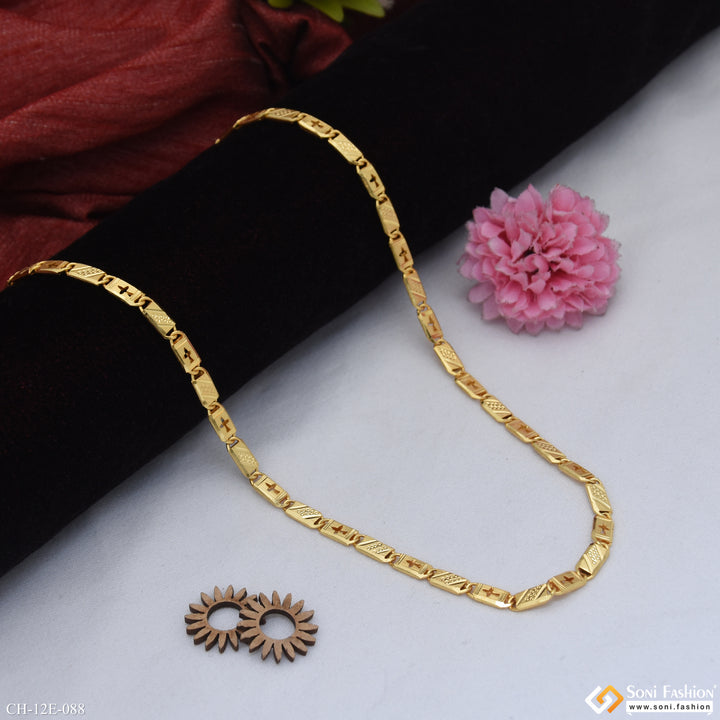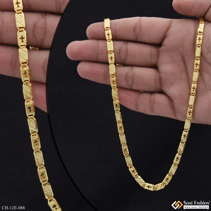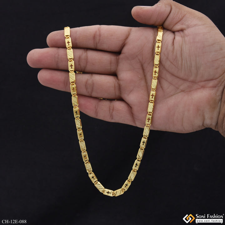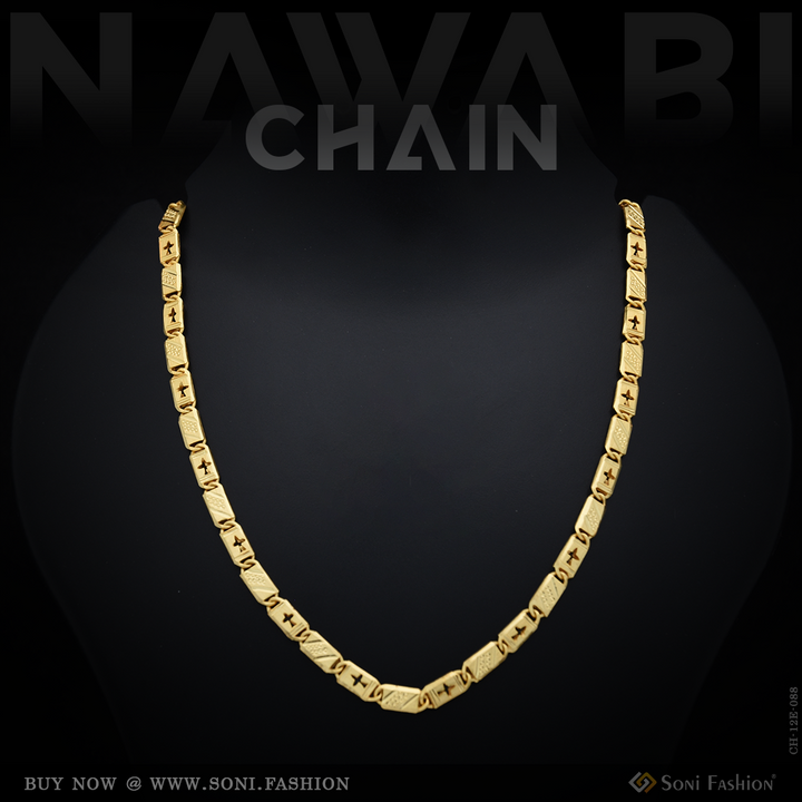 Elevate your style with this 22-inch Nawabi chain, crafted from durable brass and finished with a radiant gold plating. Its shining design adds a royal touch to any outfit, making it perfect for everyday wear or special occasions. This popular men's chain combines classic appeal with lasting quality.