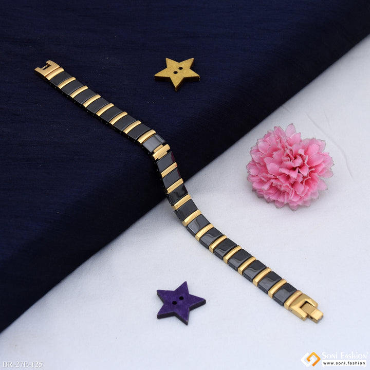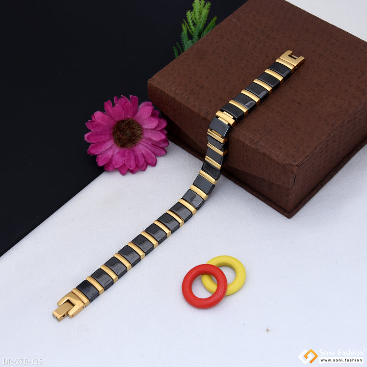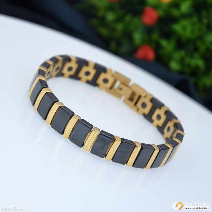Prominent Design Black & Golden Color Ceramic Bracelet for Men - Style E125