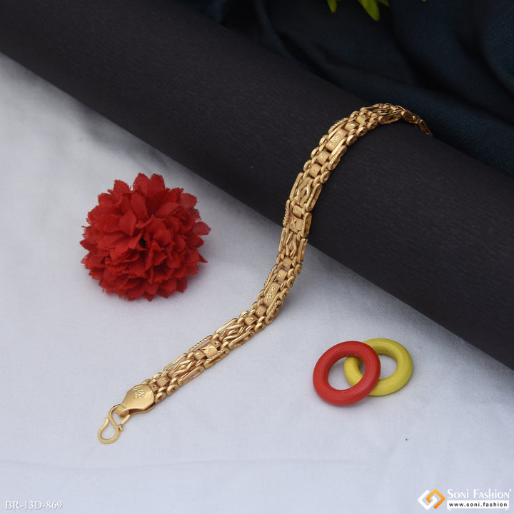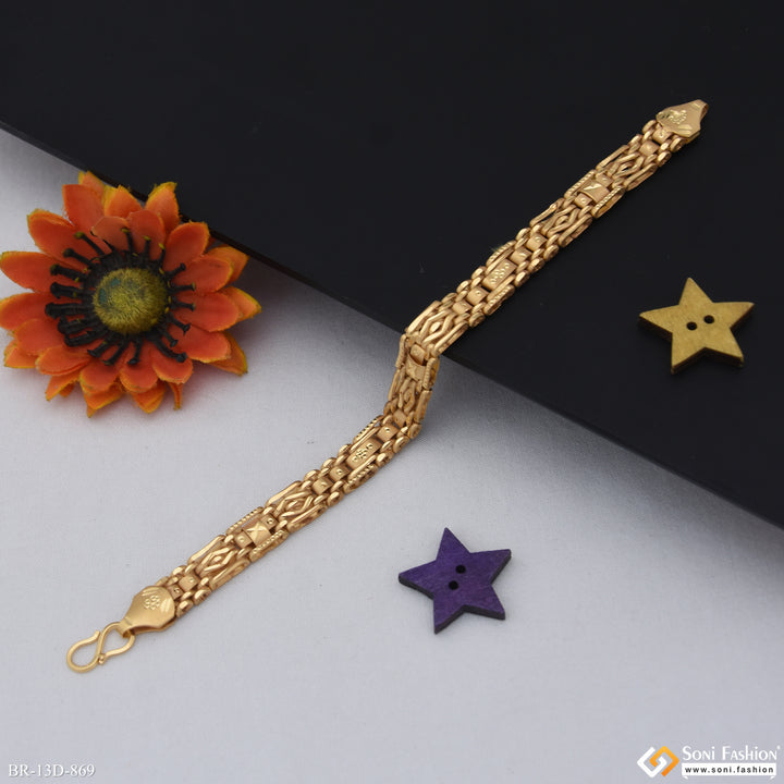 Elevate your style with this Prominent Design Gold Plated Box Bracelet for Men. Crafted from durable brass with an elegant gold plating, it offers a sleek and polished look suitable for...