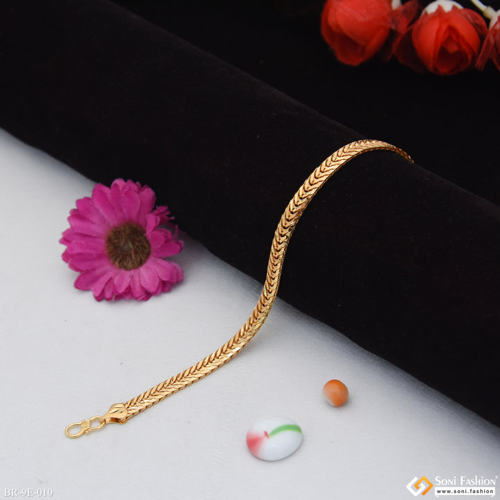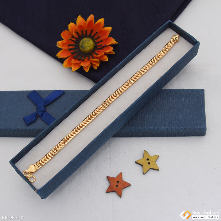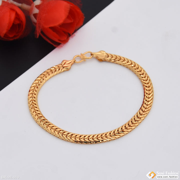 Elevate your style with this Prominent Design Gold Plated Bracelet for Men. Crafted from durable brass, it features intricate filigree work enhanced by high-quality gold plating for a shining finish. Suitable for everyday wear, this regular-sized bracelet combines classic craftsmanship with modern appeal, making it a versatile accessory for any occasion.