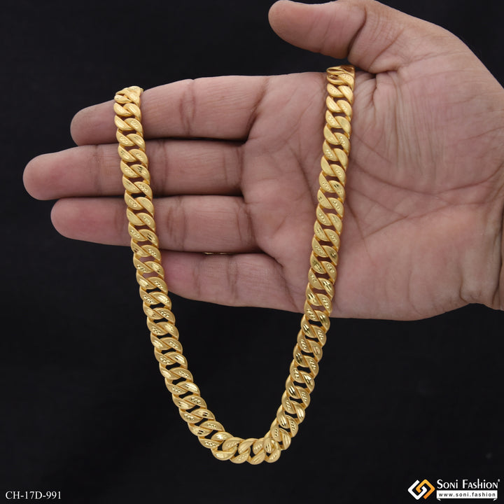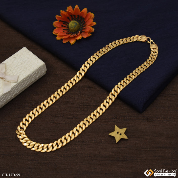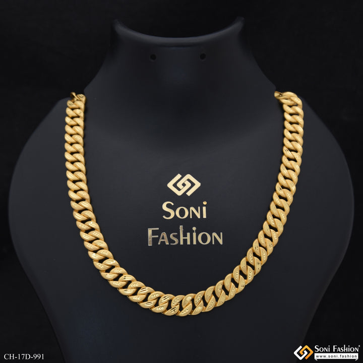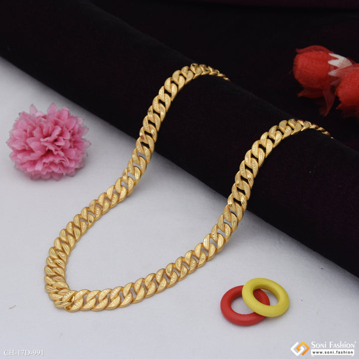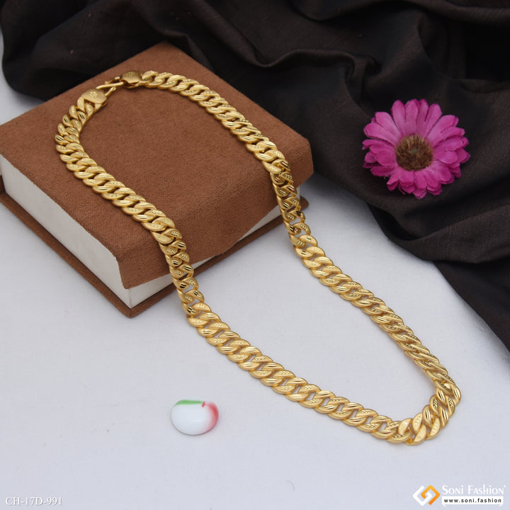 Elevate your style with this 20-inch gold-plated Pokal chain for men. Crafted from brass with a matt finish, it features a hollow, filigree design that combines royal elegance with a shining appeal. The high-quality plating ensures lasting shine and durability, making it a perfect accessory for any occasion.