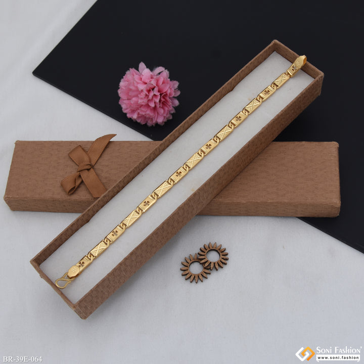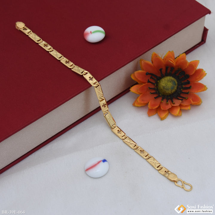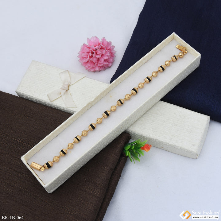 Experience the festive season with our Rakhi - Golden Ball With Bead Gold Plated Rudraksha Bracelet. Made from high-quality brass, this textured bracelet features a beautiful combination of gold and black...