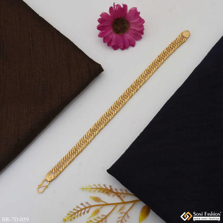 This gold-plated bracelet for men is a shining, royal addition to any wardrobe. The textured design adds a personalized touch, while the brass material and hip hop-inspired style make it a must-have for any fashion-forward individual. With its durable and stylish hid_reg_plating, this bracelet is perfect for everyday wear.