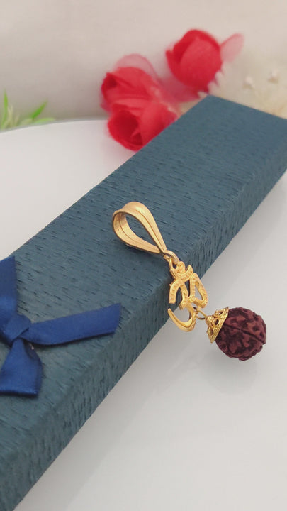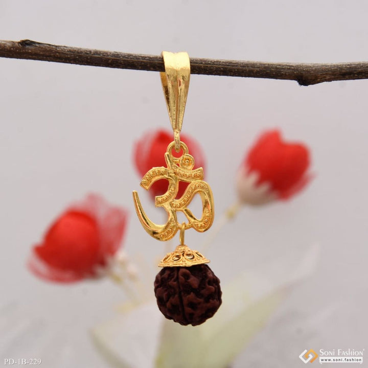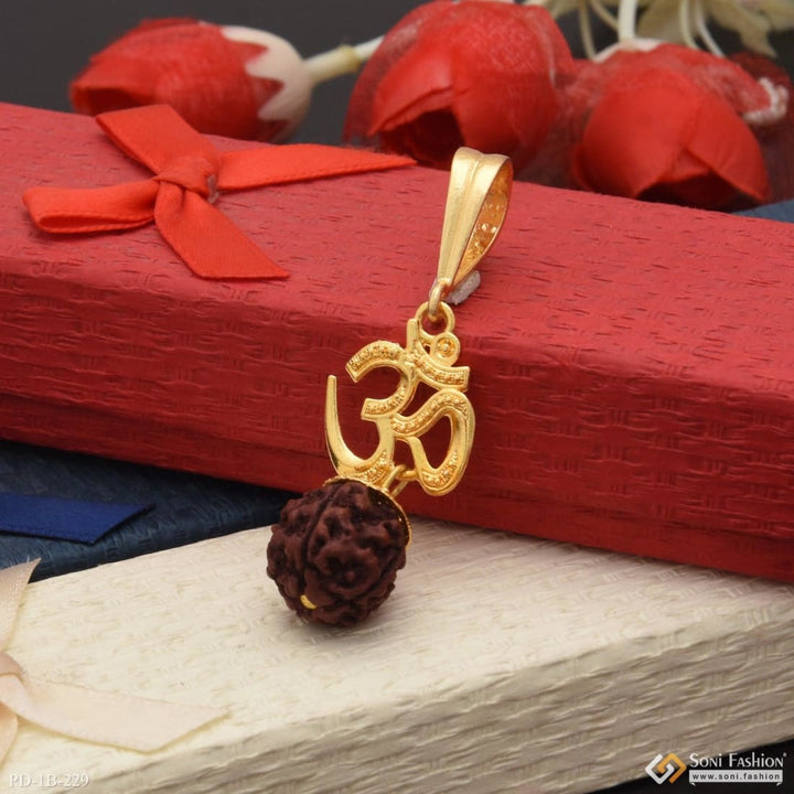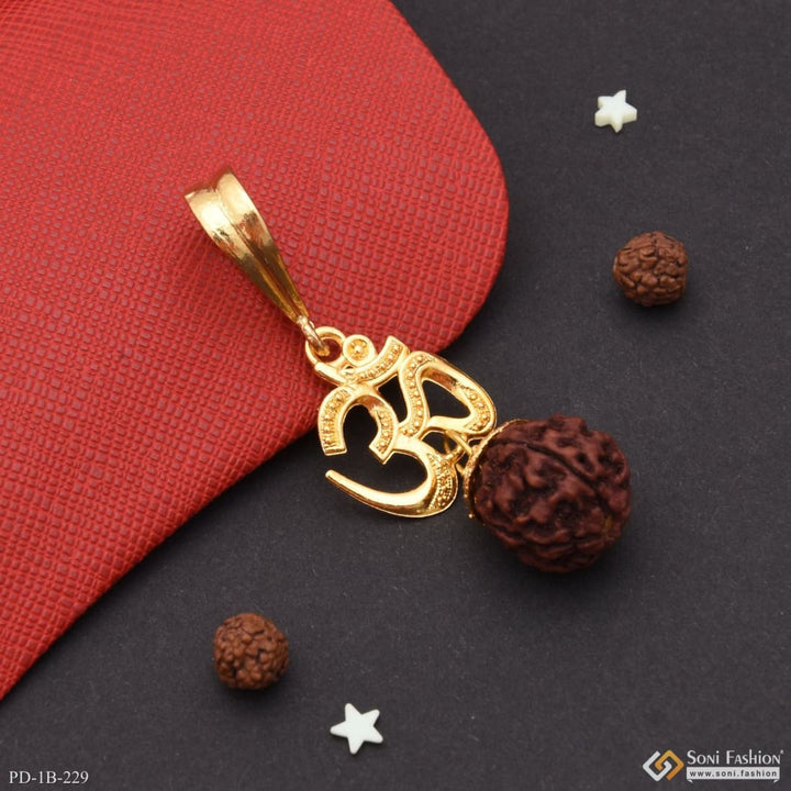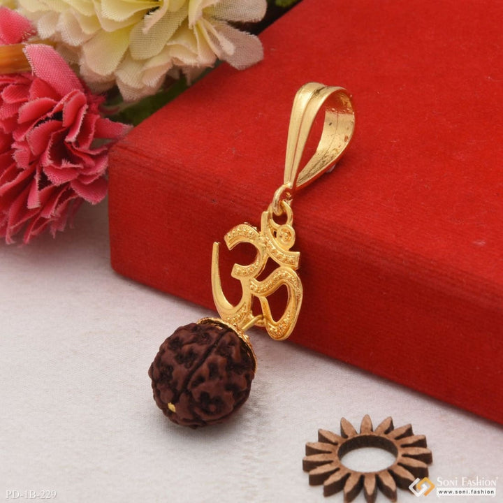 Rudraksh with Om Finely Detailed Design Gold Plated Pendant for Men - Style B229