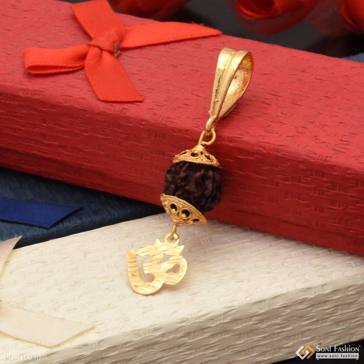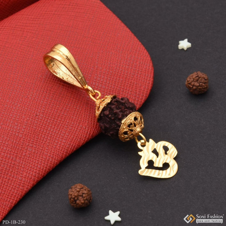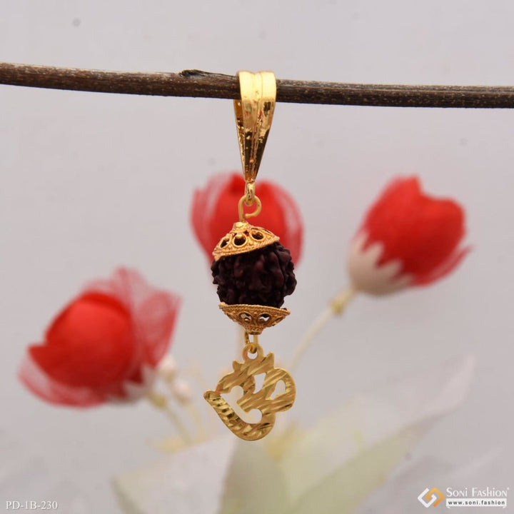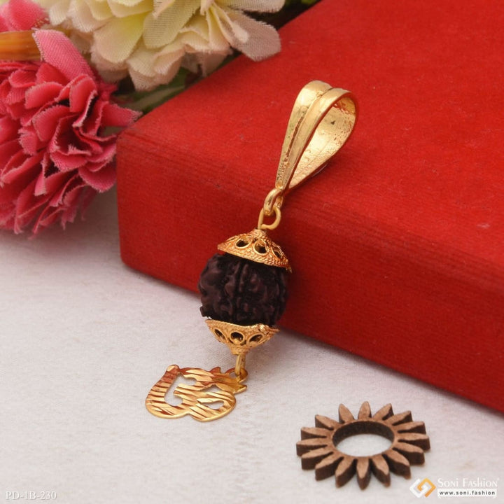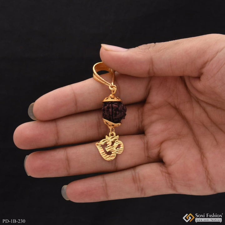 Rudraksh with Om Superior Quality Unique Design Gold Plated Pendant - Style B230
