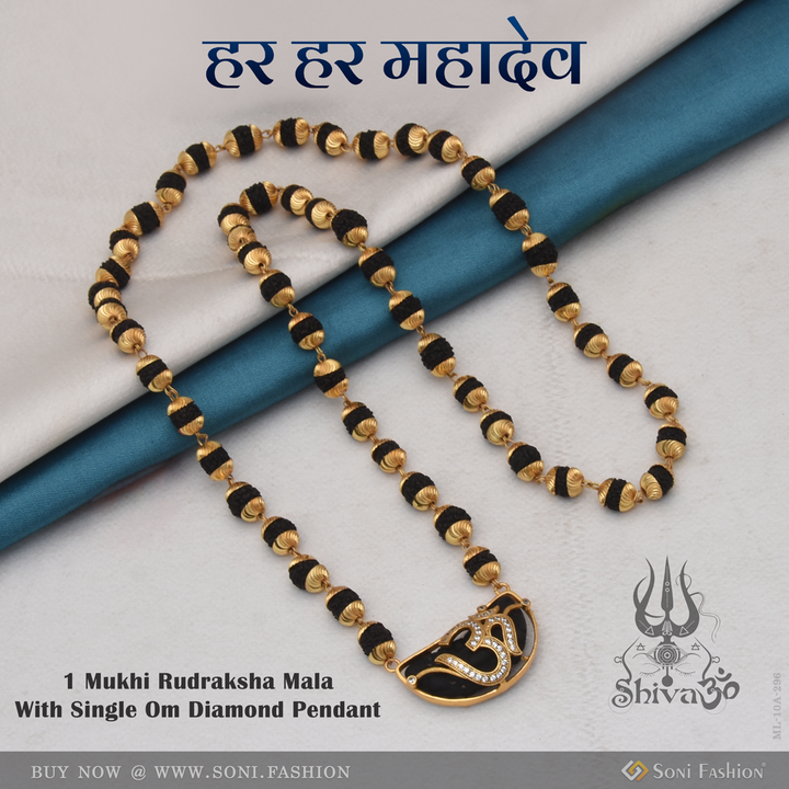 Rudraksha Mala With Om Diamond Pendant Gold Plated For Men - Style A296