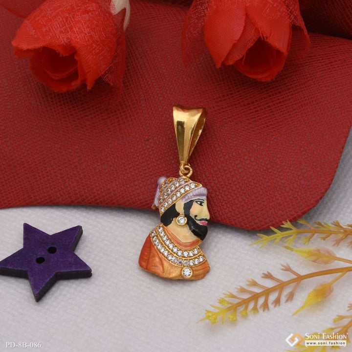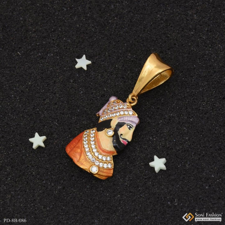Shivaji Maharaj with Diamond Best Quality Gold Plated Pendant for Men - Style B086