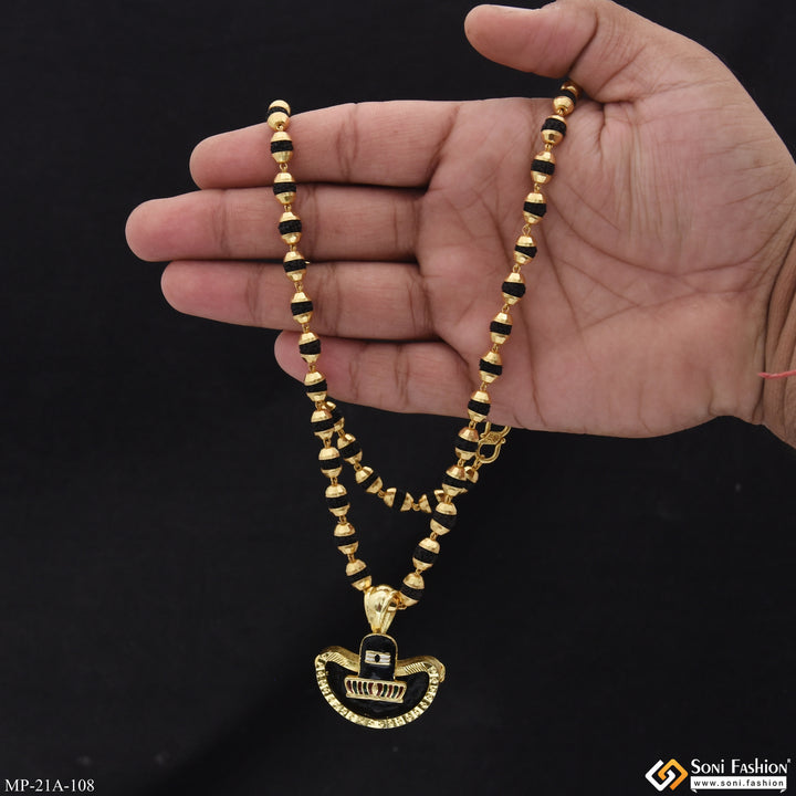 Shivling Gold Plated Pendant with Rudraksha Mala for Men - Style A108