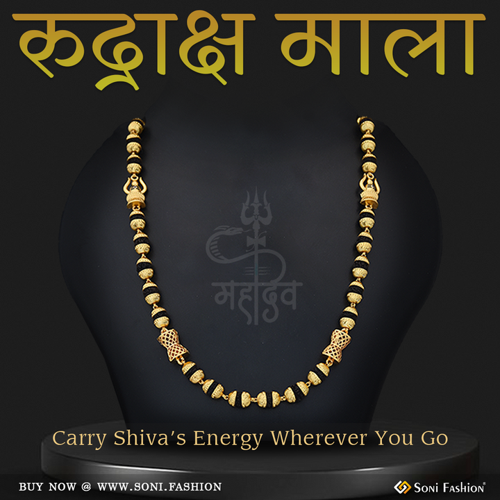 Shivling Trending Design Gold Plated Rudraksha Mala for Men - Style A424