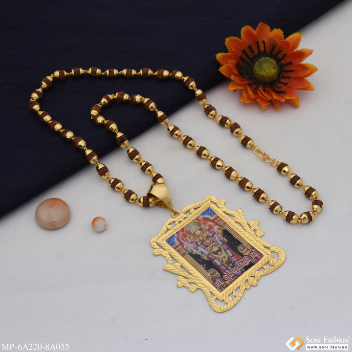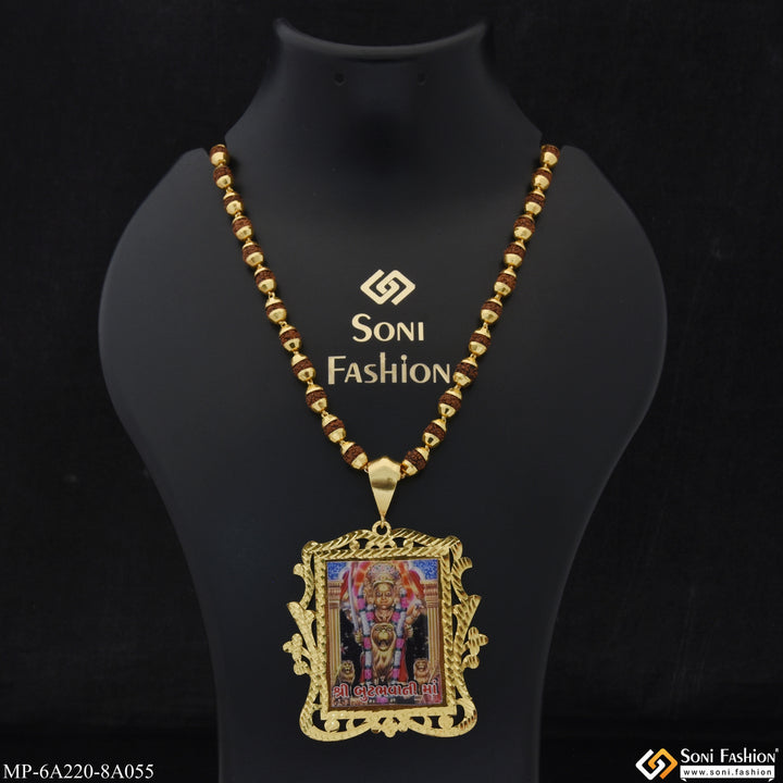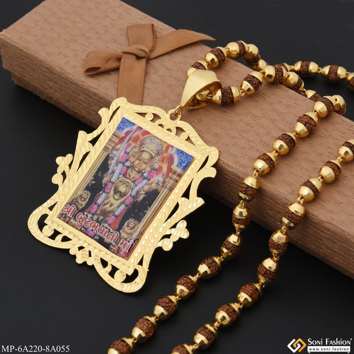 Shree Butbhavani Maa Gold Plated Pendant With Rrudraksha Mala for Men (MP-A220-A055)
