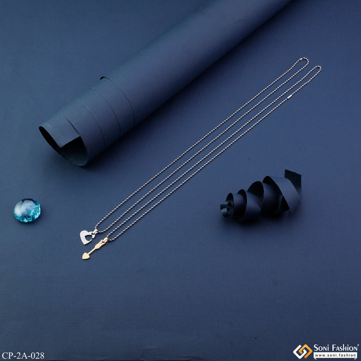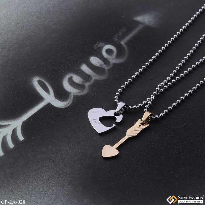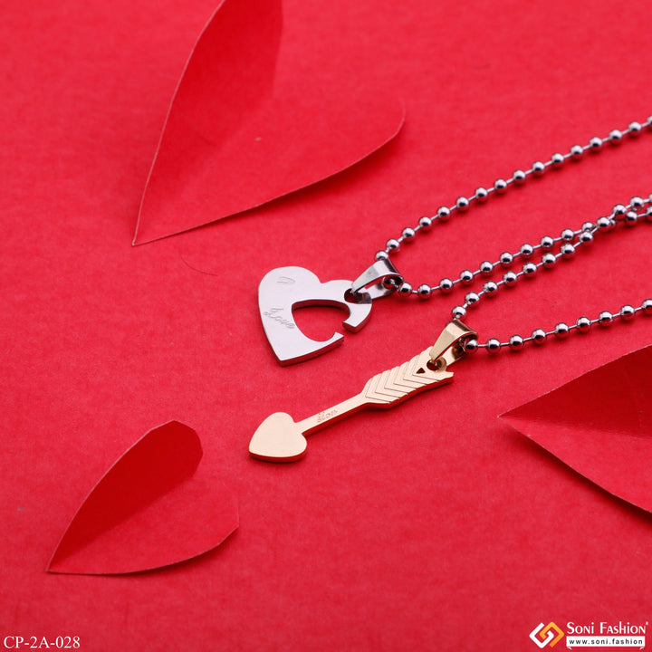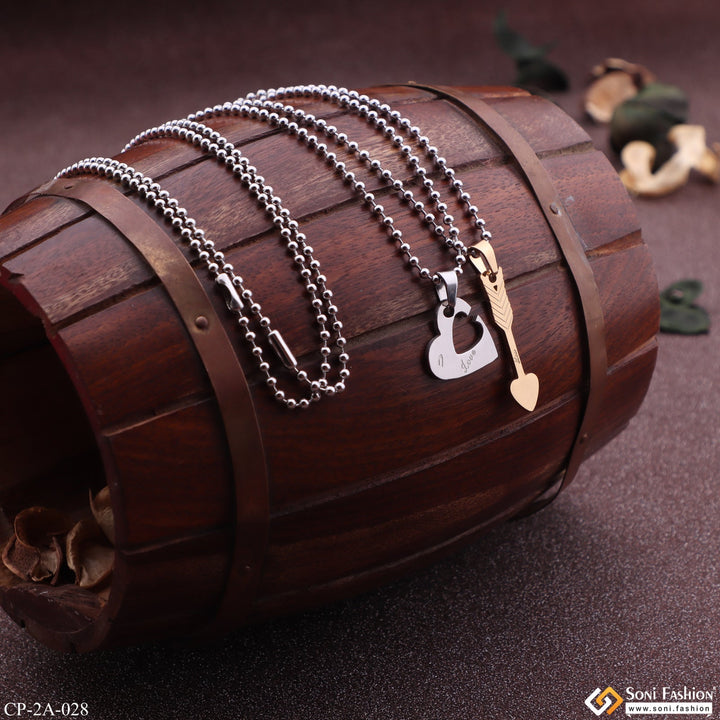 Silver Heart With Golden Arrow Locket With 2 Chain For Valentine Gift Pendant Set - Style A028
