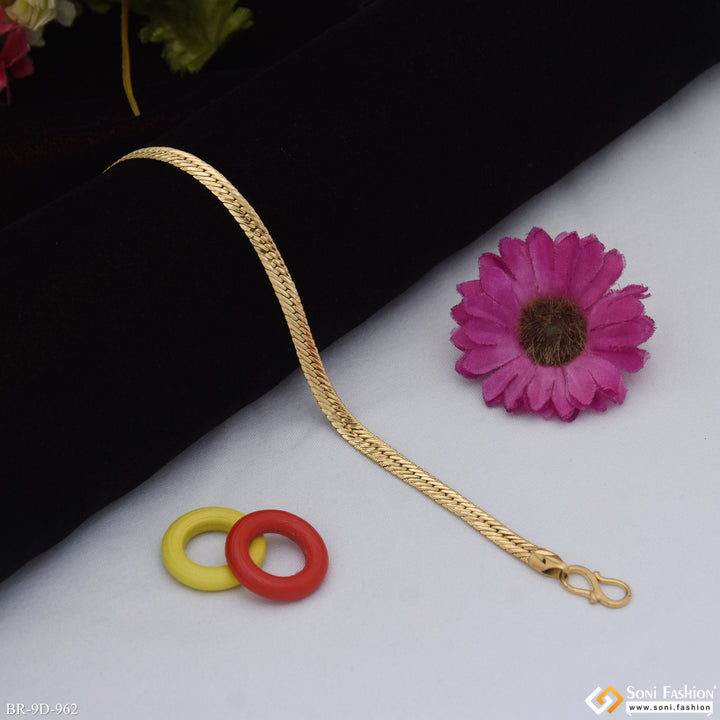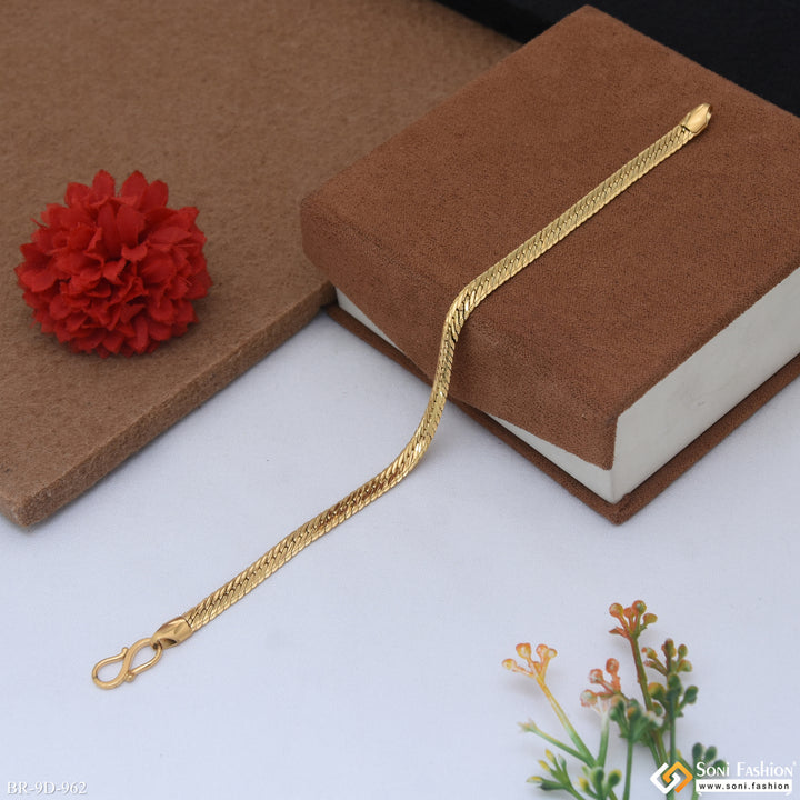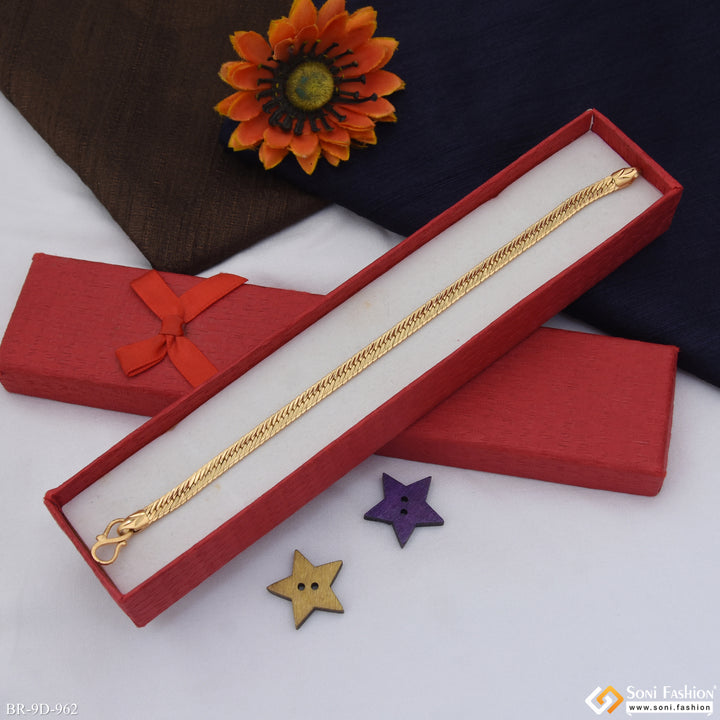 This gold-plated bracelet features a striking snake scale design crafted in brass with intricate filigree work. Its regular size ensures a comfortable fit, making it a stylish accessory for men seeking a unique and elegant look. The durable plating and detailed craftsmanship offer lasting shine and appeal.