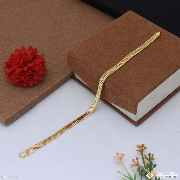 This gold-plated bracelet features a unique snake scale filigree design crafted from durable brass. Its intricate pattern adds a stylish touch to any outfit, making it a perfect accessory for men who appreciate bold yet elegant jewelry. The regular size ensures a comfortable fit, combining classic charm with modern appeal.