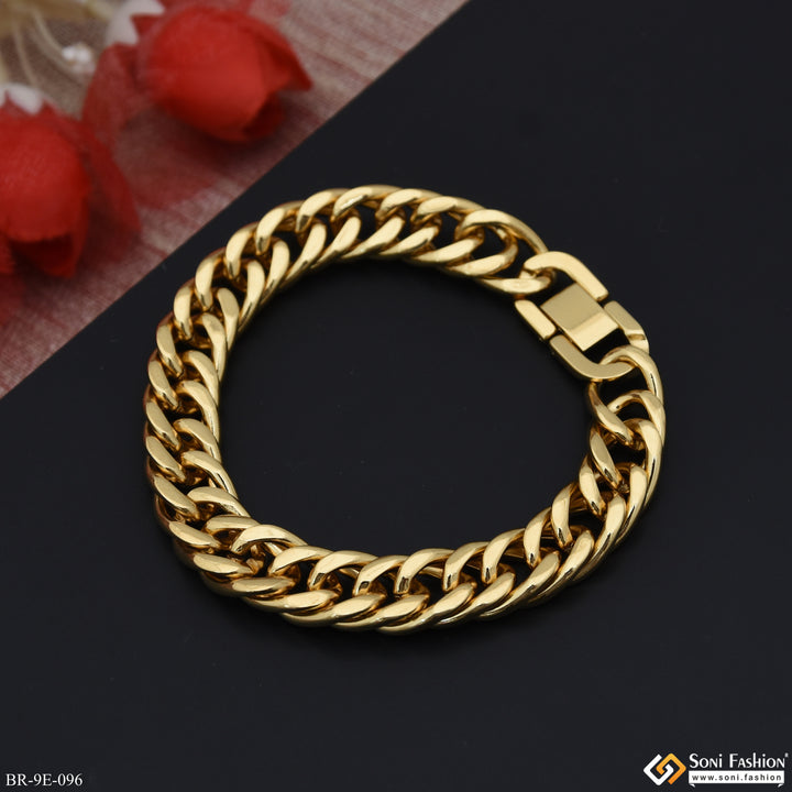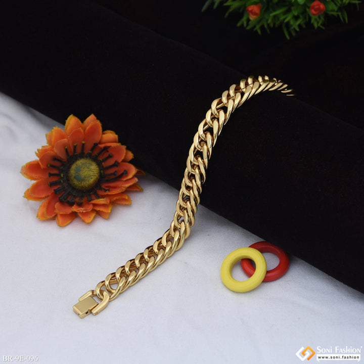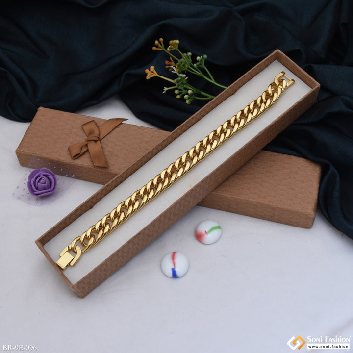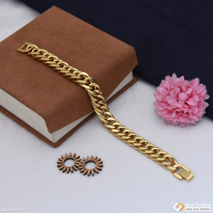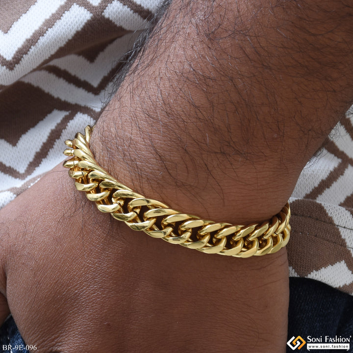 Elevate your wrist game with this striking stainless steel link bracelet, crafted for the modern man who values bold style. Featuring a sophisticated design with lustrous golden plating, this hip-hop inspired piece combines durability with eye-catching shine. The sturdy stainless steel construction ensures long-lasting wear, while the regular-weight link design offers comfortable everyday wearability.