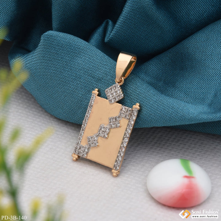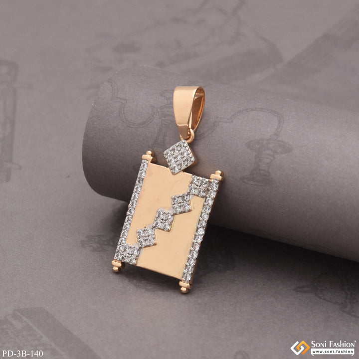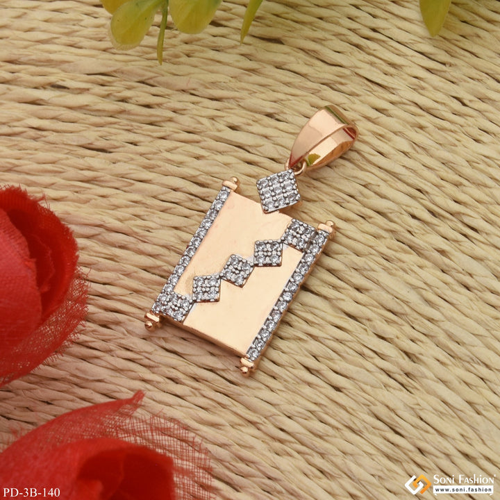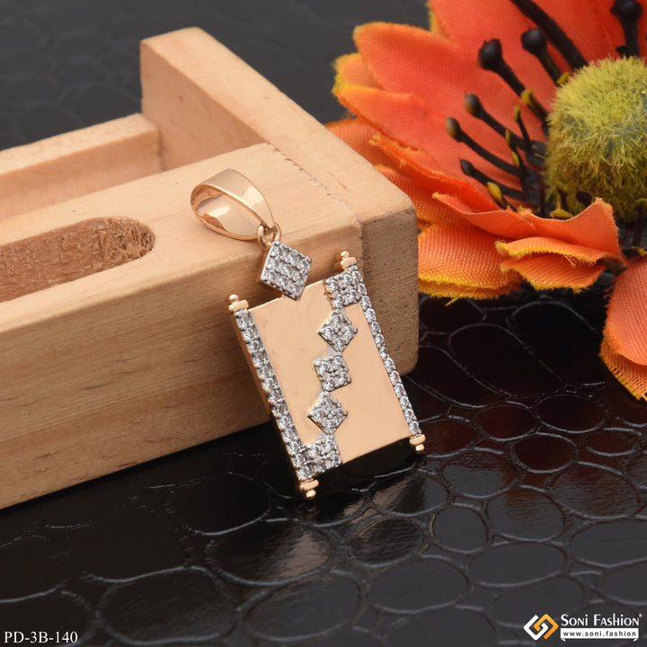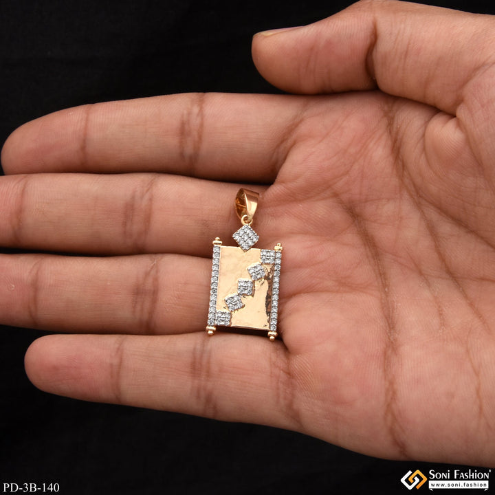 Square With Diamond Finely Detailed Design Rose Gold Pendant For Men - Style B140