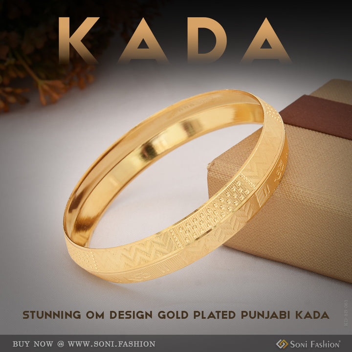 Om Stunning Design Superior Quality Gold Plated Punjabi Kada for Men - Style B061
