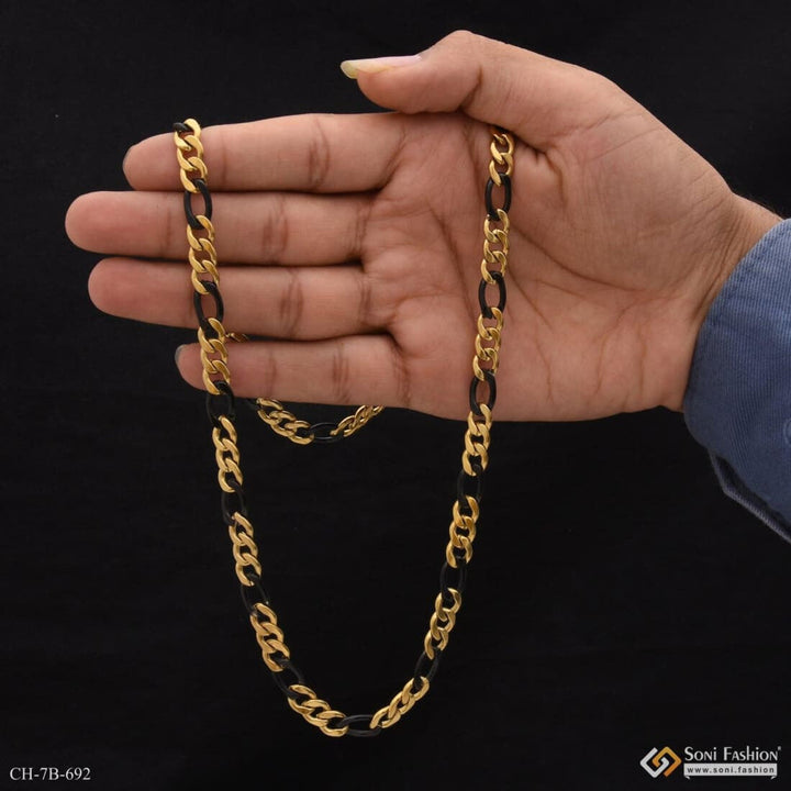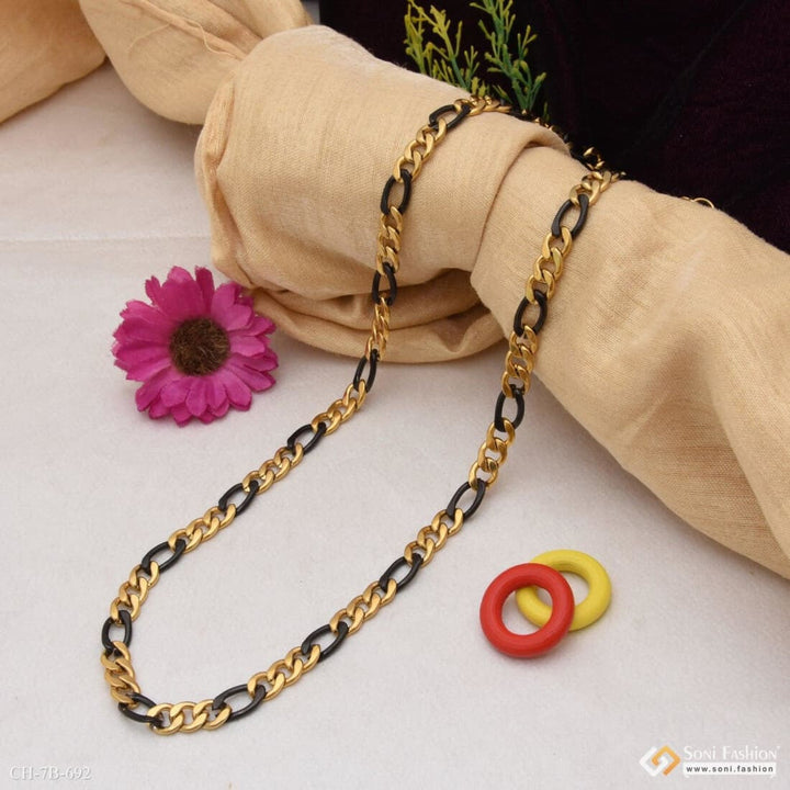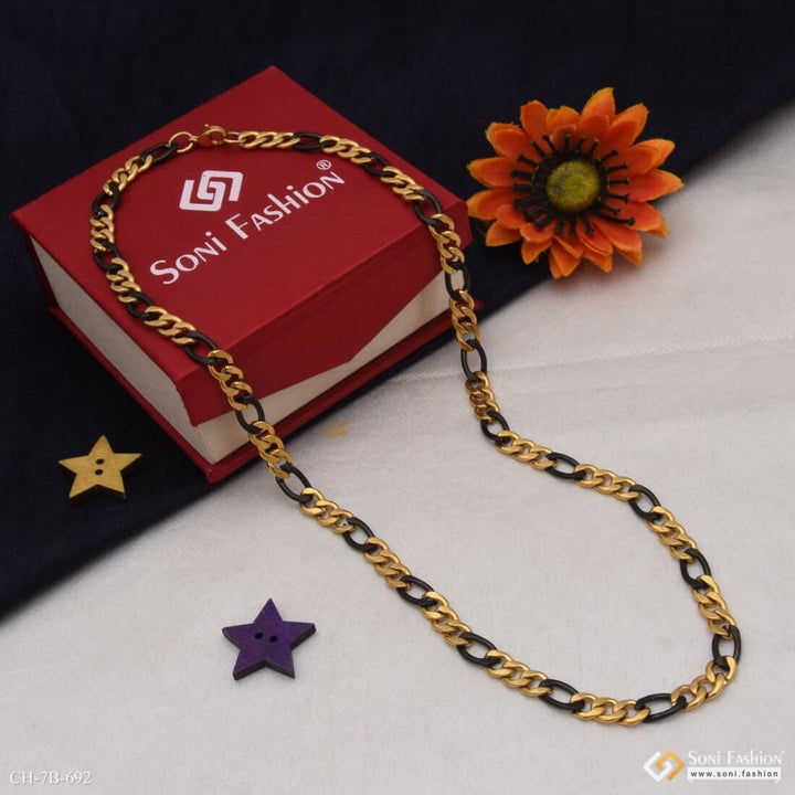 Stylish Design Best Quality 2 In 1 Black & Golden Color Chain For Men - Style B692