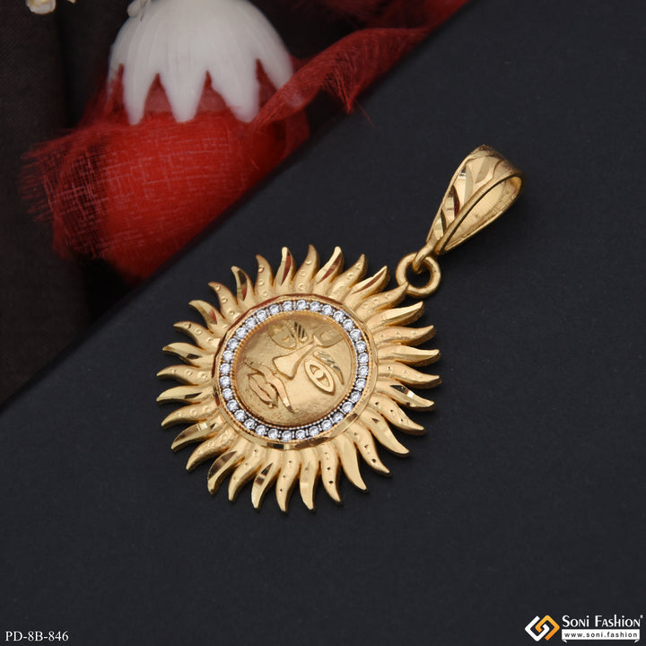 This Sun Sophisticated Design Gold Plated Pendant for Men features intricate filigree work and a radiant diamond accent, crafted from durable brass with high-quality plating. Its elegant religious motif and golden finish make it a timeless accessory that adds a refined touch to any outfit. Perfect for daily wear or special occasions, this pendant combines style and meaning in one striking piece.