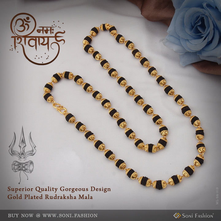 Superior Quality Gorgeous Design Gold Plated Rudraksha Mala for Men - Style A319