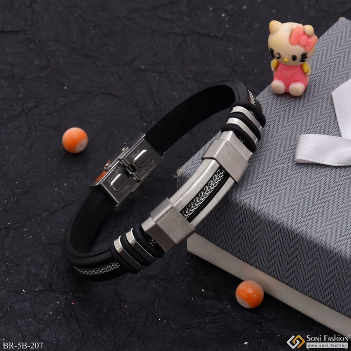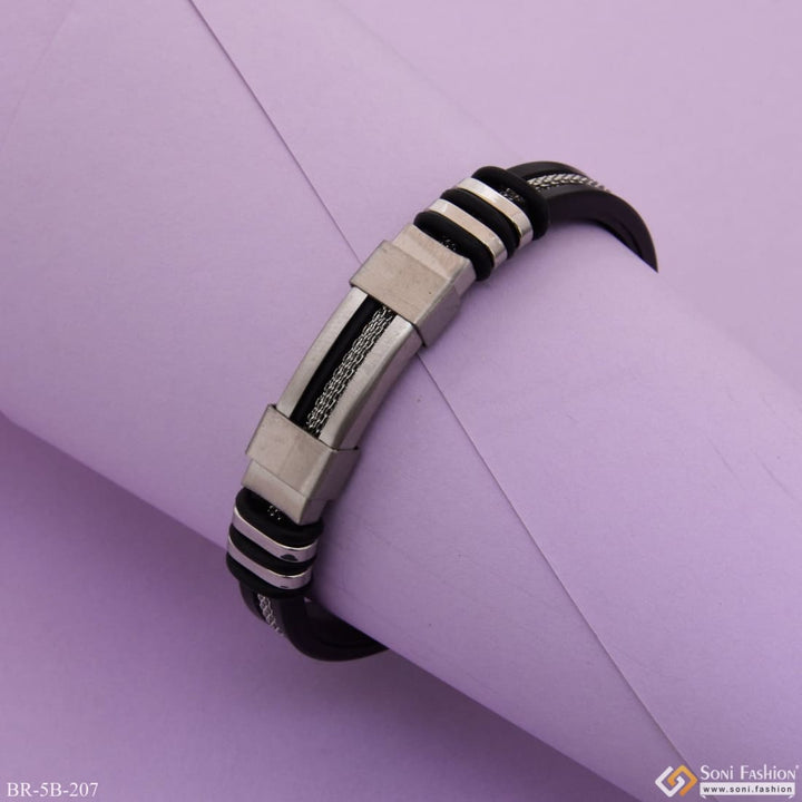 Superior Quality Unique Design Silver & Black Color Bracelet for Men - Style B207