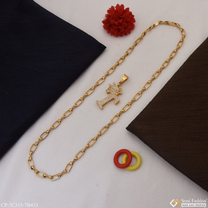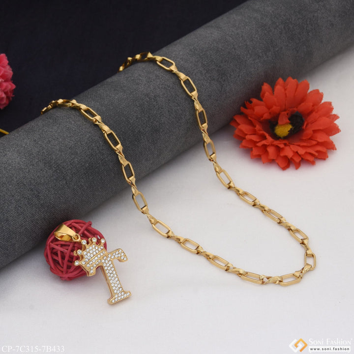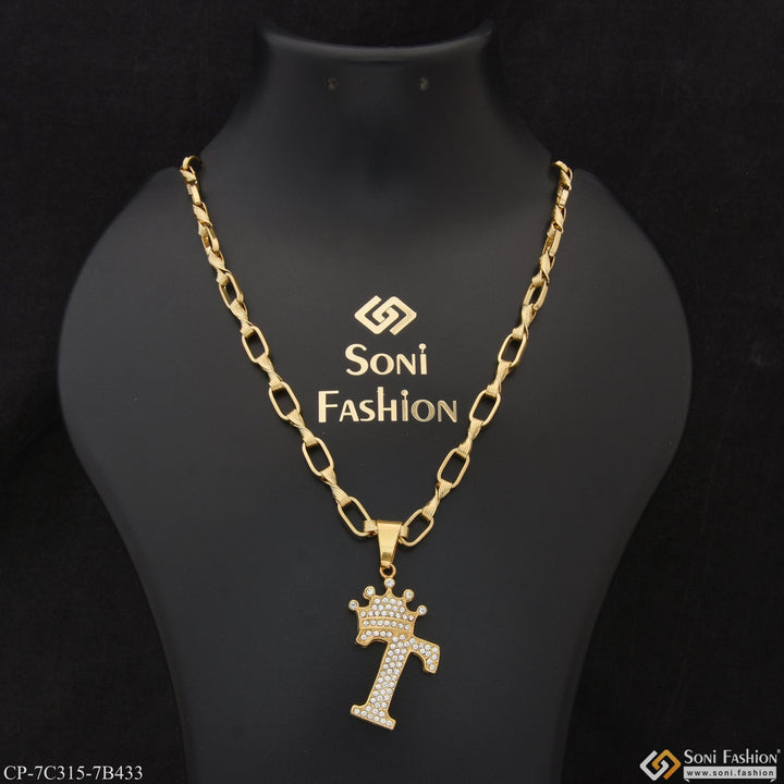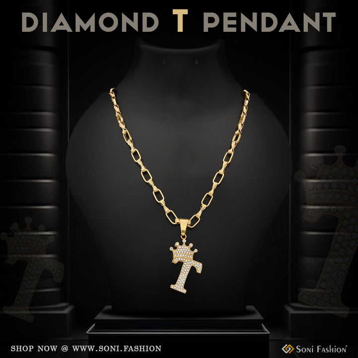 T Letter with Diamond Glamorous Design Chain Pendant Combo for Men (CP-C315-B433)