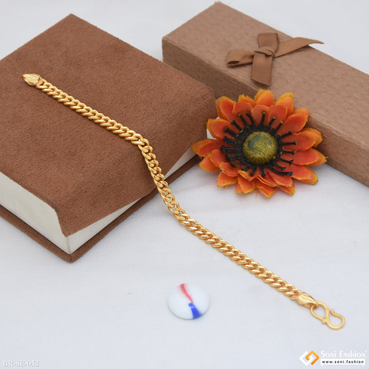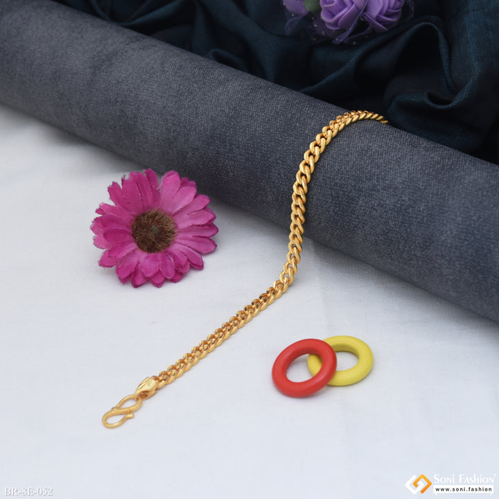 Elevate your everyday style with this traditional design gold plated link bracelet crafted from premium brass. The lustrous golden finish catches the light beautifully, adding a sophisticated touch to any outfit. Featuring a classic linked design, this regular-fit bracelet combines timeless elegance with modern appeal.