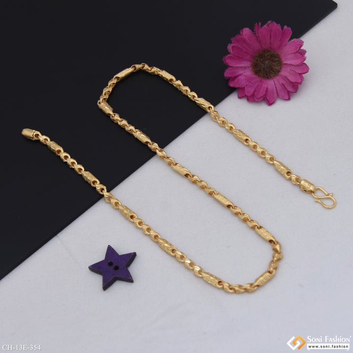 Elevate your style with this stunning gold-plated chain crafted from premium brass. Featuring a lustrous finish that catches the light beautifully, this 20-inch chain delivers timeless elegance for any occasion. The shining plating ensures a radiant glow that complements both casual and formal wear. Perfect for layering or wearing solo, this trending design piece adds sophistication to your everyday look. Durable brass construction guarantees long-lasting wear and maintains its brilliant shine season after season.