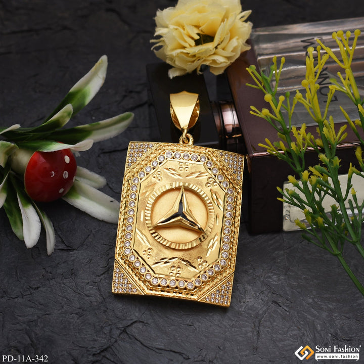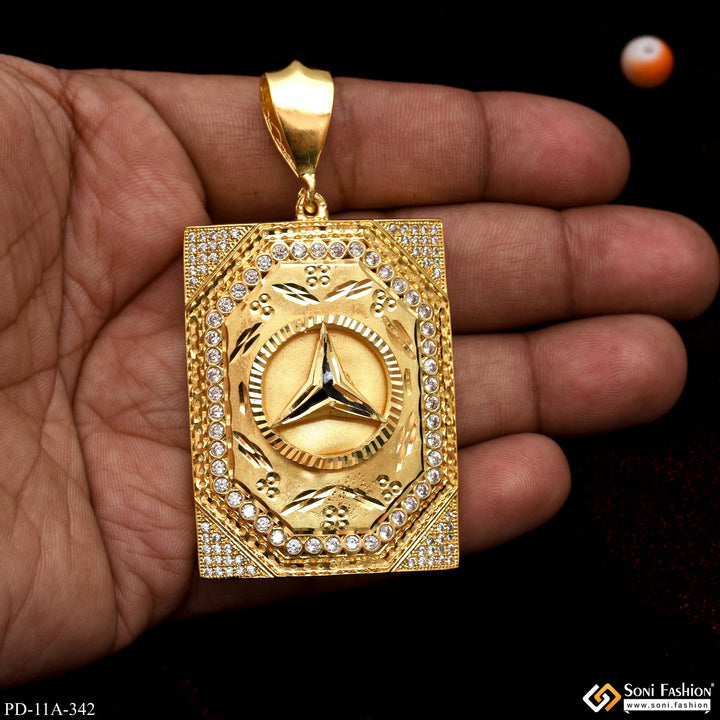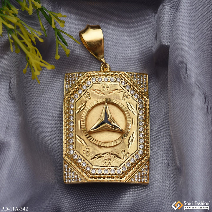 Triangle Logo Diamonds Pendant Superior Quality Gold Plated For Men - Style A342