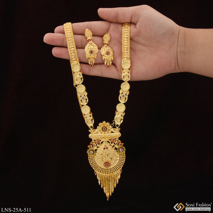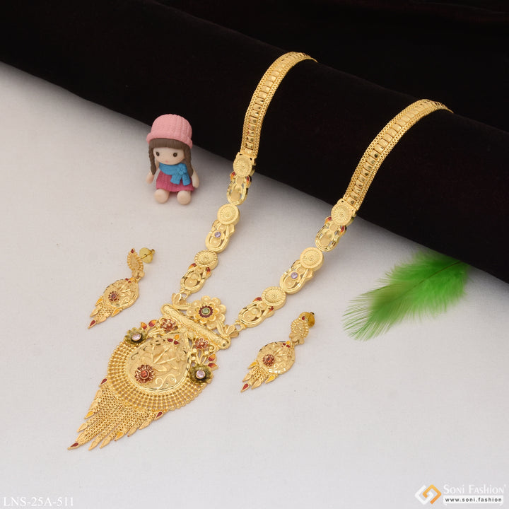 Unique Design Glittering Design Gold Plated Necklace Set for Women - Style A511