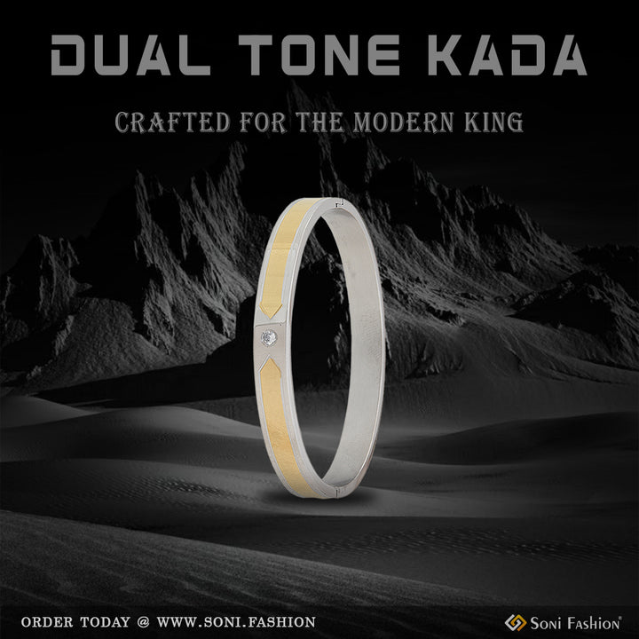 This Silver & Gold with Diamond Exquisite Design High-Quality Kada for Men features a textured silver Kada with a golden Kada and a stainless steel finish. It is accented with a diamond to create a modern, trending look. Popular in today's fashion, this piece is the perfect accessory for any occasion. | ||