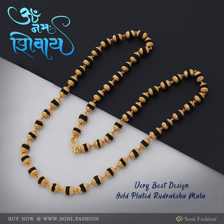 Very Best Design Rudraksha Mala - Gold Plated - For Men Boys - Style A103