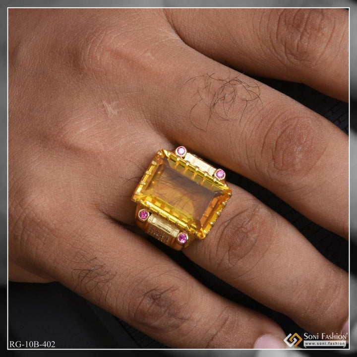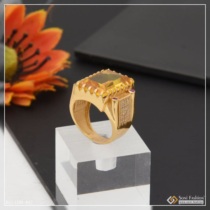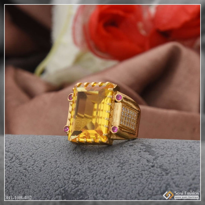 Yellow Stone with Diamond Fashionable Design Gold Plated Ring for Men - Style B402